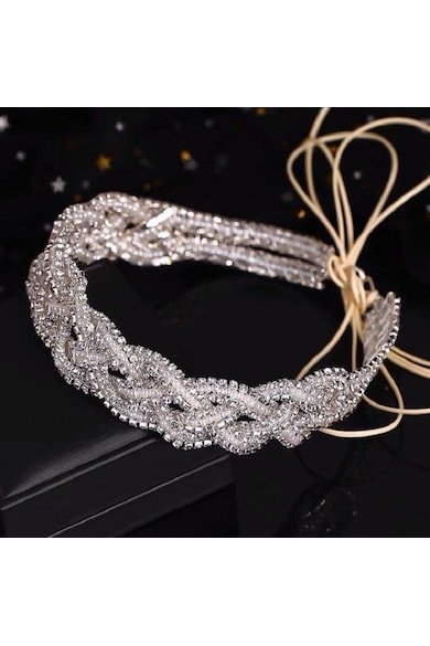 Accesoriu de par, argintiu, modelator, impletit, cu pietre, Tiana C11,