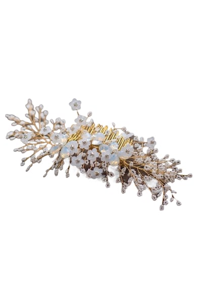 Accesoriu de par, auriu, cu perlute si flori, Maira C7,