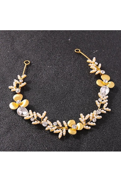 Accesoriu de par, auriu, modelator, cu floricele si perlute, Elvina C15,