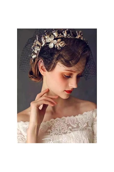 Accesoriu de par, auriu, modelator, cu frunzulite si cristale, Mailyn C7,