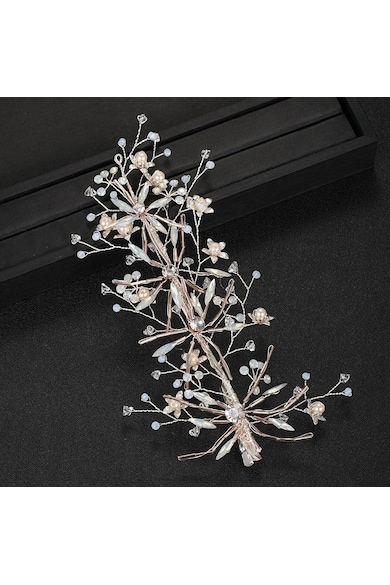 Accesoriu par, argintiu, cu flori, pietre si margelute aurii, Heinz C7,