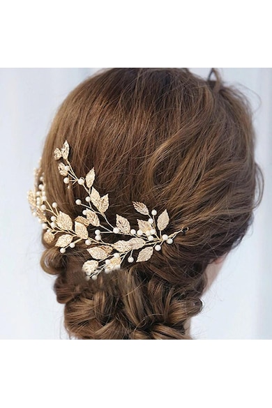 Accesoriu par, auriu, cu frunzulite si perlute, Anitha C5,