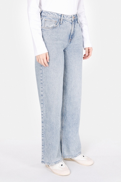 Blugi cu talie inalta si aspect decolorat