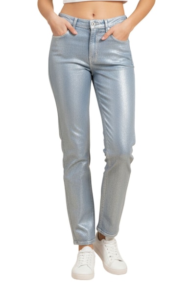 Blugi drepti cu talie inalta si aspect metalizat Harper,