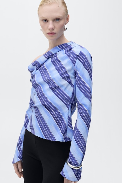 Bluza cu decolteu pe un umar si model in dungi