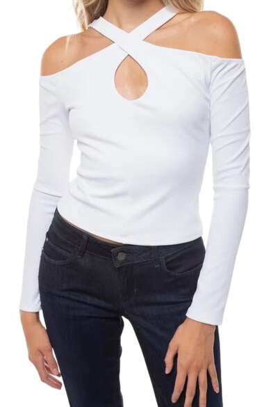 Bluza dama Lexa, decolteu in V, poliester/elastan, alb,