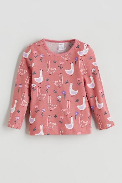 Bluza din bumbac cu decolteu rotund si imprimeu