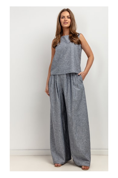 Bluza fara maneci cu decolteu barcuta, din amestec de in,