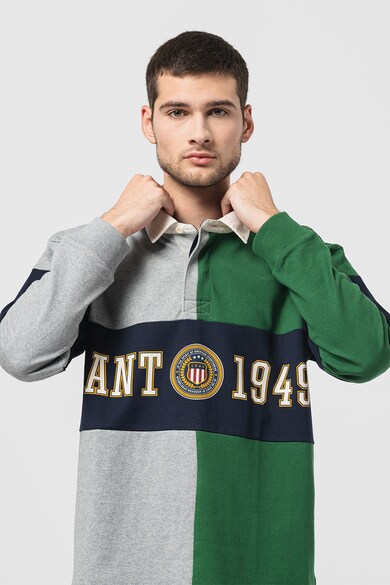 Detalii: design colorblock, fenta scurta cu nasturi, imprimeu logo