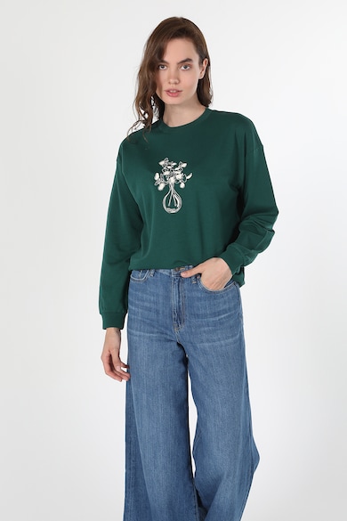 Bluza sport cu decolteu la baza gatului si imprimeu grafic