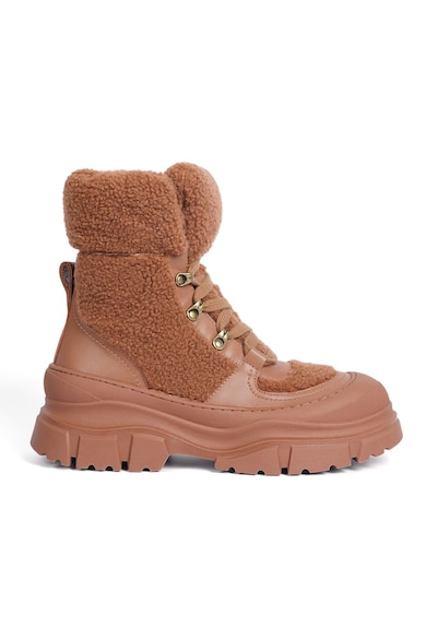 Bocanci din piele naturala cu insertii din material teddy Retta