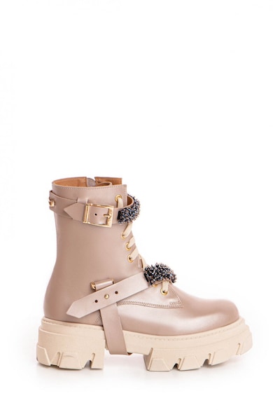 Bocanci Nadia din piele naturala nude sidefat, cu accesorii