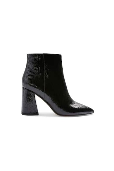 Botine dama negru, material sintetic, toc bloc 9 cm, cu fermoar,