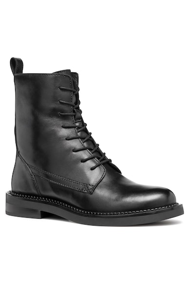 Botine dama, piele naturala, negru, talpa plata, inchidere cu fermoar,
