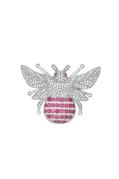 Brosa argintie, forma de bondar, cu pietre din zirconiu, Dolfine C4,