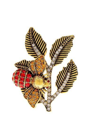 Brosa aurie, forma de frunze cu bondar si pietre, Mathia C5,