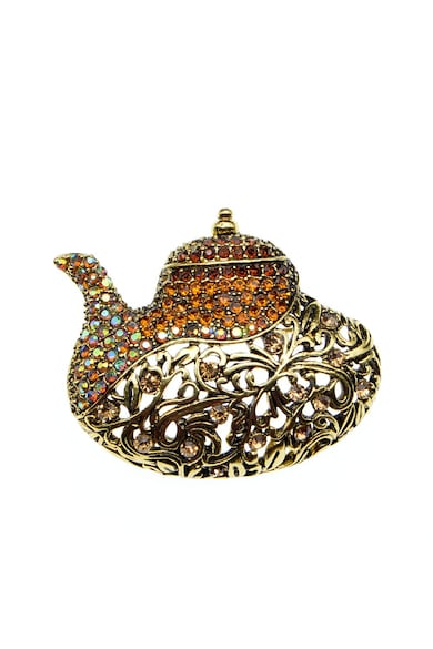 Brosa aurie, in forma de lampa magica a lui Aladin, cu pietre, Leslie C2,