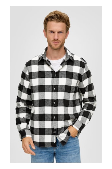 Camasa barbati din amestec de bumbac cu elastan, imprimeu in carouri si croiala Regular fit
