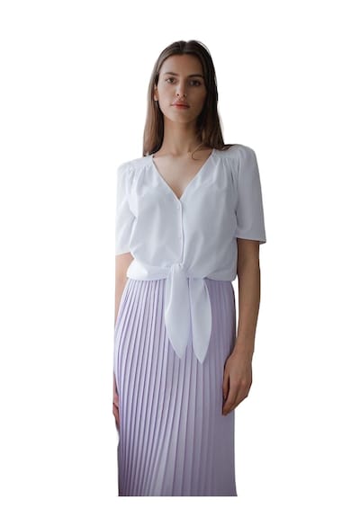 Camasa dama, alb, cu decolteu in forma de inima, maneci scurte, material poliester.,