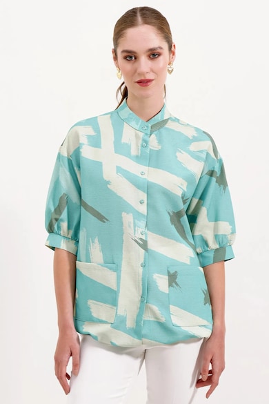 Camasa dama, imprimeu abstract, verde, viscoza, in