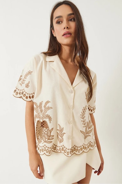 Camasa dama LUCCI, din bumbac, maneci scurte, bej