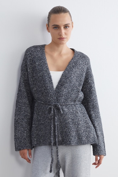 Cardigan tricotat cu decolteu in V si cordon in talie
