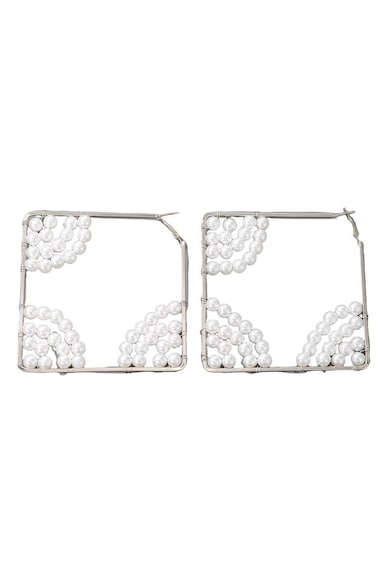 Cercei argintii, patrati, cu perlute, Esma C16,