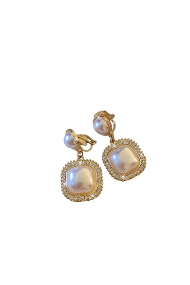 Cercei aurii, cu clips, perle si pietre, Iris C5,
