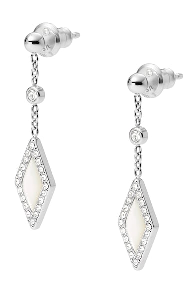 Cercei drop de otel inoxidabil cu mother of pearl si zirconia, Argintiu/Alb prafuit