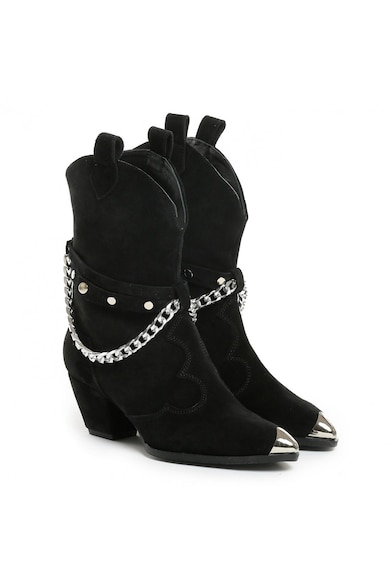 Ciocate Bushra Piele Intoarsa Neagra cu Accesorii Argintii