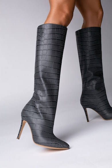 Cizme Ashen Charm cu toc inalt, piele naturala de culoare gri