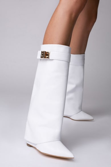 Cizme Morrigan cu toc pana, piele naturala, albe