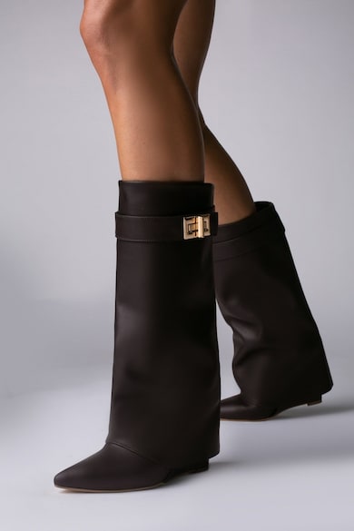 Cizme Morrigan cu toc pana, piele naturala, maro inchis