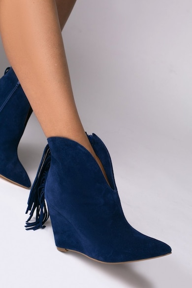 Cizme tip ciocate Navy Breeze piele intoarsa bleumarin cu franjuri
