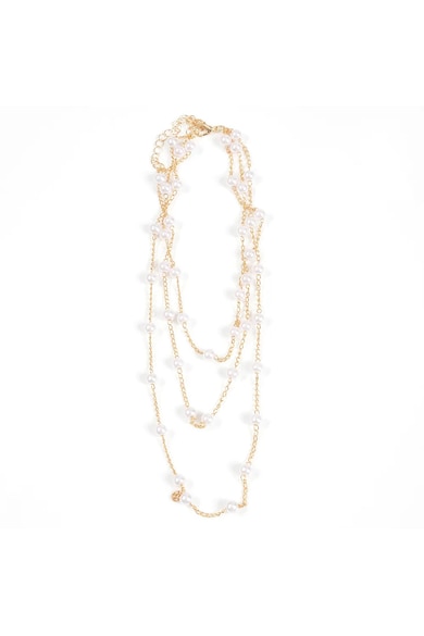 Colier alb cu perle si lanturi aurii, 32x10cm