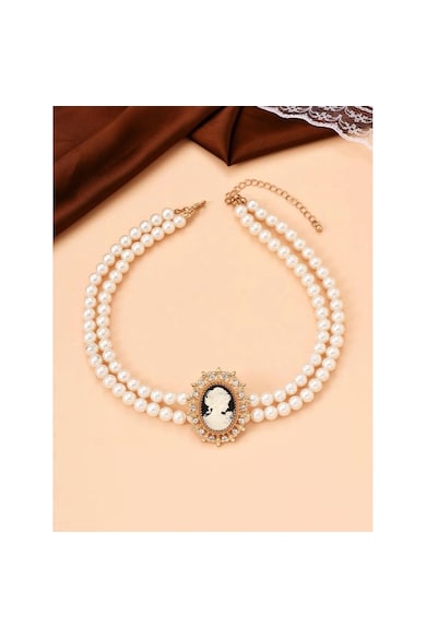 Colier choker, auriu, cu perle si pandantiv vintage, Arja C24