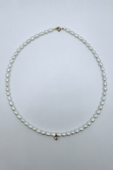 Colier placat cu aur de 24K decorat cu perle si pandantiv cu cristale