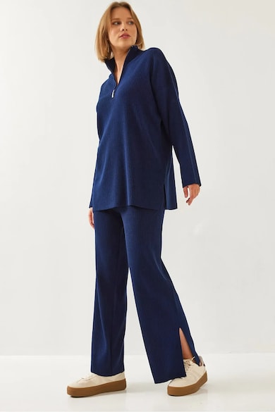 Compleu, Set doua piese, guler cu fermoar, bleumarin, tricot,