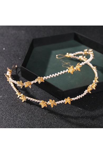 Coronita aurie, modelatoare, cu perle si flori, Fabiola C10,