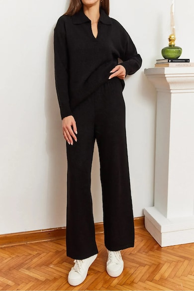 Costum dama, set asortat, tricotat, decolteu in V, negru,