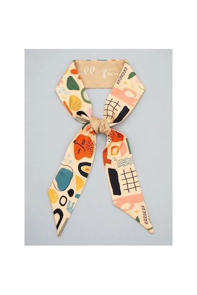 Esarfa bej, cu imprimeu abstract multicolor, Sarka C1