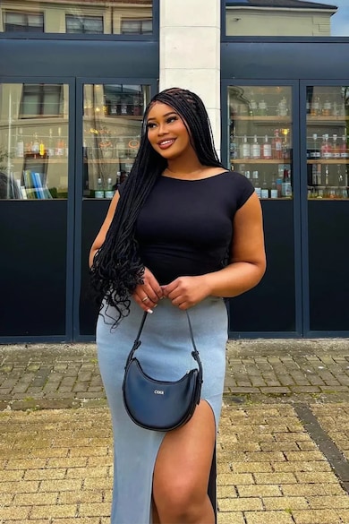 Fusta maxi dama, tricot, gri
