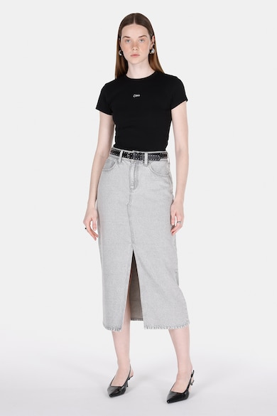 Fusta midi din denim cu slit frontal