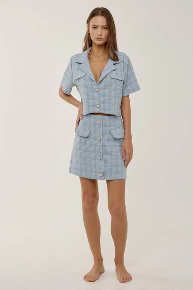 Fusta mini dama bumbac/poliester/acril, cu nasturi, albastru