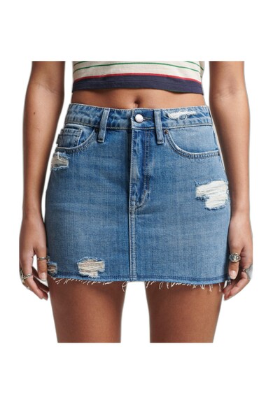 Fusta SUPERDRY Vintage, albastru, M INTL, bumbac