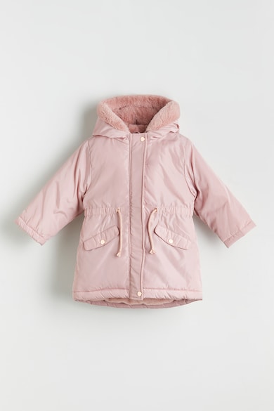 Geaca cu gluga si snur de ajustare in talie, Roz pastel,