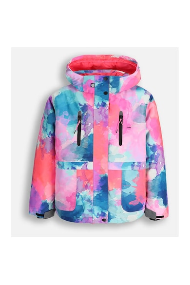 Geaca impermeabila de ski cu imprimeu abstract si gluga,
