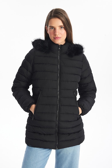 Geaca matlasata cu vatelina, gluga si garnitura din blana sintetica