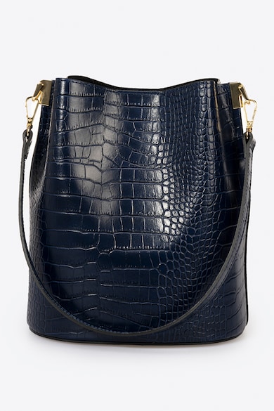 Geanta de piele cu bareta de umar si aspect de piele de crocodil