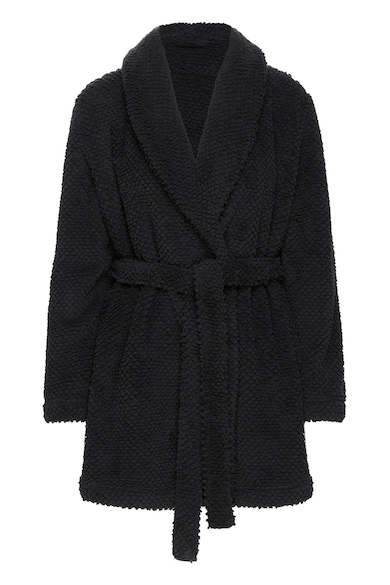 Halat dama Jamie, negru, fleece, maneca lunga, 2 buzunare,